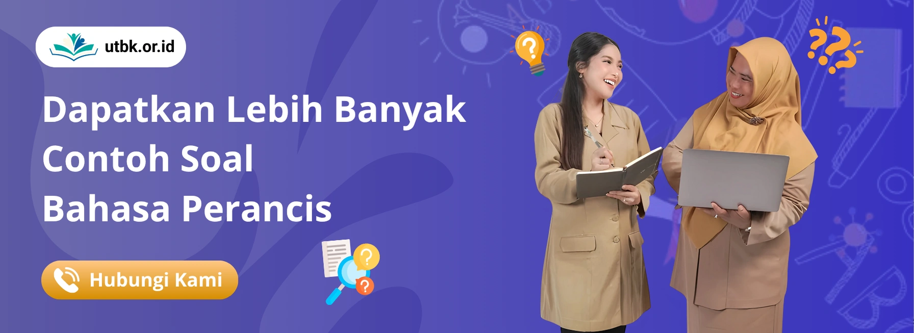 Artikel ini hanya menampilkan sebagian kecil dari 100+ soal TKA Bahasa Prancis. Untuk latihan yang lebih lengkap, tersedia paket soal TKA Bahasa Prancis di utbk.or.id dengan ratusan soal latihan, kunci jawaban, serta pembahasan detail. Kamu juga bisa mencoba tryout berbasis simulasi nyata layaknya ujian asli, sehingga persiapanmu menuju tes lebih matang dan percaya diri.